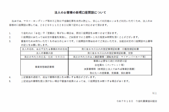 今金発!ニュース バックナンバー 2025年10月 (1) 2025年8月 (1) 2025年6月 (1) 2025年5月 (2) 2025年4月 (1) 2025年2月 (1) 2025年1月 (2) 2024年5月 (2) 2024年3月 (1) 2024年2月 (1) 2024年1月 (1) 2023年12月 (1) 2023年9月 (1) 2023年7月 (2) 2023年6月 (2) 2023年5月 (1) 2023年4月 (2) 2023年3月 (1) 2023年2月 (2) 2023年1月 (2) 2022年12月 (3) 2022年11月 (3) 2022年10月 (1) 2022年9月 (1) 2022年8月 (7) 2022年7月 (4) 2022年6月 (2) 2022年5月 (1) 2022年4月 (3) 2022年3月 (4) 2022年1月 (7) 2021年12月 (8) 2021年11月 (1) 2021年10月 (2) 2021年9月 (1) 2021年8月 (2) 2021年7月 (1) 2021年6月 (7) 2021年5月 (6) 2021年4月 (4) 2021年3月 (4) 2021年2月 (1) 2021年1月 (5) 2020年12月 (1) 2020年11月 (6) 2020年10月 (2) 2020年9月 (1) 2020年8月 (1) 2020年7月 (2) 2019年10月 (2) 2019年9月 (2) 2019年8月 (1) 2019年5月 (1) 2019年3月 (1) 2018年11月 (2) 2018年9月 (1) 2017年10月 (1) 2017年5月 (1) 2017年2月 (1) 2016年10月 (2) 2016年9月 (4) 2016年8月 (4) 2016年7月 (1) 2016年6月 (1) 2016年5月 (2) 2016年4月 (10) 2016年3月 (9) 2016年2月 (2) 2015年9月 (3) 2015年6月 (1) 2015年4月 (4) 2015年3月 (2) 2015年2月 (3) 2014年12月 (2) 2014年11月 (1) 2014年10月 (3) 2014年9月 (5) 2014年8月 (3) 2014年7月 (1) 2014年6月 (2) 2014年5月 (2) 2014年4月 (3) 2014年3月 (4) 2014年2月 (5) 2014年1月 (3) 2013年12月 (6) 2013年11月 (4) 2013年10月 (2) 2013年9月 (6) 2013年8月 (4) 2013年6月 (2) 2013年5月 (11) 2013年4月 (10) 2013年3月 (1) 2013年2月 (5) 2013年1月 (1) 2012年12月 (9) 2012年11月 (14) 2012年10月 (14) 2012年9月 (15) 2012年8月 (10) 2012年4月 (1) 2012年3月 (2) 2012年2月 (3) 2012年1月 (4) 2011年11月 (7) 2011年10月 (6) 2011年9月 (2) 2011年7月 (1) 2011年6月 (5) 2011年4月 (1) 2011年2月 (1) 2010年11月 (1) 2010年10月 (2) 2010年9月 (4) 2010年8月 (1) 2009年6月 (3) 2009年5月 (2) 2008年11月 (3) 2008年10月 (3) 2008年9月 (3) 2008年8月 (4) 2008年7月 (2) 2008年6月 (2) 2008年5月 (2) 2008年4月 (3) Blog Category 各部からのお知らせ いまかね通信 ~地域の話題をお届けします!~ (275) JA今金町青年部 (29) JA今金町女性部 (24) 管理部 (9) 入札情報 (2) 一般事業主行動計画 (4) 営農部 (14) 北海道今金町フードリポート〜食の現場から〜2009 (5) 北海道今金町フードリポート〜食の現場から〜 (16) 金融部 (13) 経済部 (3) Aコープ (10) いまかね通信 ~地域の話題をお届けします!~ JA今金町青年部 JA今金町女性部 管理部 入札情報 一般事業主行動計画 営農部 北海道今金町フードリポート〜食の現場から〜2009 北海道今金町フードリポート〜食の現場から〜 金融部 経済部 Aコープ 法人のお客様の新規口座開設について 2025/10/28 ホームに戻る バックナンバー 2025年10月 (1) 2025年8月 (1) 2025年6月 (1) 2025年5月 (2) 2025年4月 (1) 2025年2月 (1) 2025年1月 (2) 2024年5月 (2) 2024年3月 (1) 2024年2月 (1) 2024年1月 (1) 2023年12月 (1) 2023年9月 (1) 2023年7月 (2) 2023年6月 (2) 2023年5月 (1) 2023年4月 (2) 2023年3月 (1) 2023年2月 (2) 2023年1月 (2) 2022年12月 (3) 2022年11月 (3) 2022年10月 (1) 2022年9月 (1) 2022年8月 (7) 2022年7月 (4) 2022年6月 (2) 2022年5月 (1) 2022年4月 (3) 2022年3月 (4) 2022年1月 (7) 2021年12月 (8) 2021年11月 (1) 2021年10月 (2) 2021年9月 (1) 2021年8月 (2) 2021年7月 (1) 2021年6月 (7) 2021年5月 (6) 2021年4月 (4) 2021年3月 (4) 2021年2月 (1) 2021年1月 (5) 2020年12月 (1) 2020年11月 (6) 2020年10月 (2) 2020年9月 (1) 2020年8月 (1) 2020年7月 (2) 2019年10月 (2) 2019年9月 (2) 2019年8月 (1) 2019年5月 (1) 2019年3月 (1) 2018年11月 (2) 2018年9月 (1) 2017年10月 (1) 2017年5月 (1) 2017年2月 (1) 2016年10月 (2) 2016年9月 (4) 2016年8月 (4) 2016年7月 (1) 2016年6月 (1) 2016年5月 (2) 2016年4月 (10) 2016年3月 (9) 2016年2月 (2) 2015年9月 (3) 2015年6月 (1) 2015年4月 (4) 2015年3月 (2) 2015年2月 (3) 2014年12月 (2) 2014年11月 (1) 2014年10月 (3) 2014年9月 (5) 2014年8月 (3) 2014年7月 (1) 2014年6月 (2) 2014年5月 (2) 2014年4月 (3) 2014年3月 (4) 2014年2月 (5) 2014年1月 (3) 2013年12月 (6) 2013年11月 (4) 2013年10月 (2) 2013年9月 (6) 2013年8月 (4) 2013年6月 (2) 2013年5月 (11) 2013年4月 (10) 2013年3月 (1) 2013年2月 (5) 2013年1月 (1) 2012年12月 (9) 2012年11月 (14) 2012年10月 (14) 2012年9月 (15) 2012年8月 (10) 2012年4月 (1) 2012年3月 (2) 2012年2月 (3) 2012年1月 (4) 2011年11月 (7) 2011年10月 (6) 2011年9月 (2) 2011年7月 (1) 2011年6月 (5) 2011年4月 (1) 2011年2月 (1) 2010年11月 (1) 2010年10月 (2) 2010年9月 (4) 2010年8月 (1) 2009年6月 (3) 2009年5月 (2) 2008年11月 (3) 2008年10月 (3) 2008年9月 (3) 2008年8月 (4) 2008年7月 (2) 2008年6月 (2) 2008年5月 (2) 2008年4月 (3) Blog Category 各部からのお知らせ いまかね通信 ~地域の話題をお届けします!~ (275) JA今金町青年部 (29) JA今金町女性部 (24) 管理部 (9) 入札情報 (2) 一般事業主行動計画 (4) 営農部 (14) 北海道今金町フードリポート〜食の現場から〜2009 (5) 北海道今金町フードリポート〜食の現場から〜 (16) 金融部 (13) 経済部 (3) Aコープ (10) いまかね通信 ~地域の話題をお届けします!~ JA今金町青年部 JA今金町女性部 管理部 入札情報 一般事業主行動計画 営農部 北海道今金町フードリポート〜食の現場から〜2009 北海道今金町フードリポート〜食の現場から〜 金融部 経済部 Aコープ