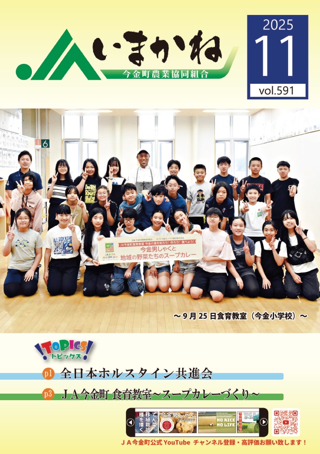 広報誌 ●JA今金町広報誌 農業・JA・地域の話題を掲載しているJA広報「いまかね」です。 表紙をクリックしていただくと、PDFファイルでご覧いただけます。 PDFをご覧になるにはADOBE READERが必要です。 バックナンバー 2025 (11) 2024 (11) 2023 (11) 2022 (11) 2021 (11) 2020 (11) 2019 (11) 2018 (11) 2017 (11) 2016 (11) 2015 (12) 2014 (12) 2013 (13) 2012 (9) 2011 (8) 2010 (8) 2009 (7) 2025年 11月 vol.591 ホームに戻る バックナンバー 2025 (11) 2024 (11) 2023 (11) 2022 (11) 2021 (11) 2020 (11) 2019 (11) 2018 (11) 2017 (11) 2016 (11) 2015 (12) 2014 (12) 2013 (13) 2012 (9) 2011 (8) 2010 (8) 2009 (7)
